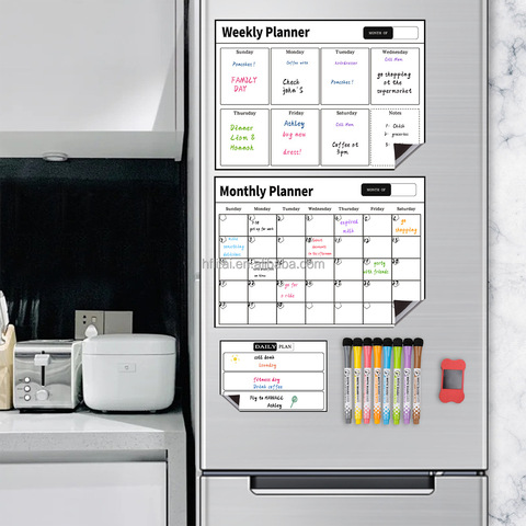 สติกเกอร์ติดตู้เย็นปฏิทินไวท์บอร์ดสติกเกอร์ติดผนังกระดานแม่เหล็กสำหรับแผนการเรียนรู้